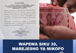 Mkurugenzi Mtendaji  wa Halmashauri ya Wilaya ya Rombo anawatangazia Vikundi vya wanawake,vijana na wenye ulemavu ambao majina yao yameorodheshwa hapa chini kuwasilisha marejesho ya mikopo wanayo...